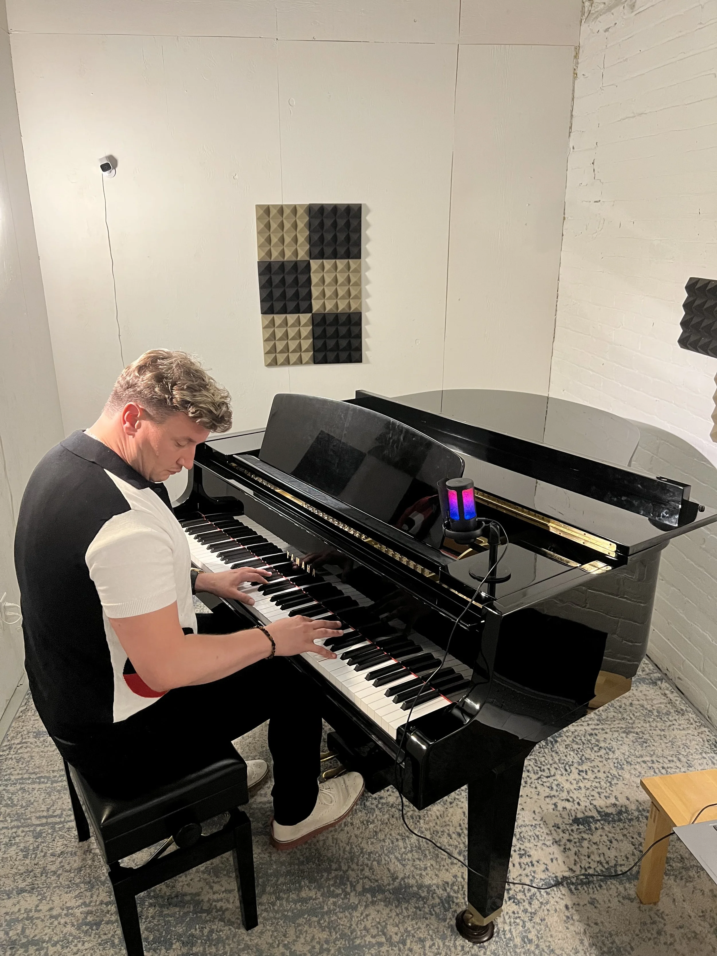 The musical aspect of this project consists of live, improvised piano pieces that serve as a direct response to the art. The music is described as cinematic and neoclassical, with emotional and soulful qualities. The titles, such as "Les merveilles du cosmos deux en sol majeur (The Cosmos Wonders Part Two in G Major)," directly link the musical compositions to the visual art. This connection creates a multi-sensory experience, allowing the audience to not only see the cosmos but also hear its wonders and conflicts.